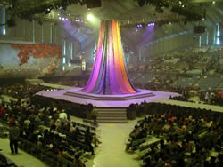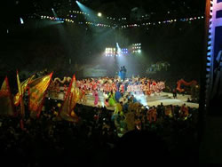 日出克の「みるくむなり」で琉球国まつり太鼓が踊ります。