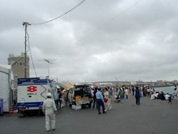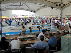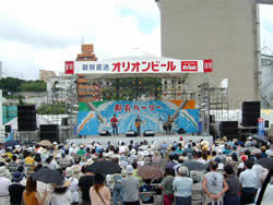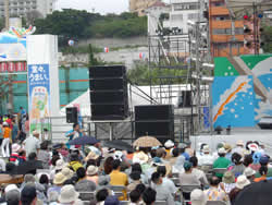 埠頭にはサブステージとメインステージが組まれコンサートなどが行われます。サブステージではこれから沖縄角力の収録が行われる予定。