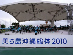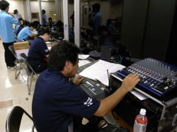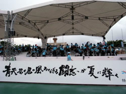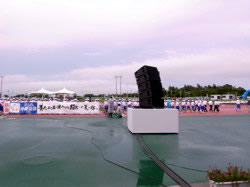 スピーカーから会場全体へ伝わっていました。高校生が進行やアトラクション出演を担当して
