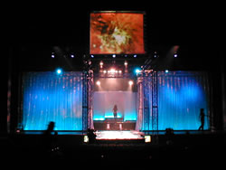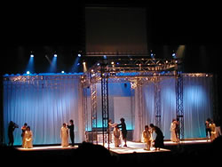 ステージはトラスの上に映像用スクリーンを配したデザイン。